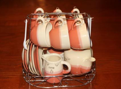 Serwis kawowy 15 el Filiżanki Zestaw do kawy Kremowo-Łososiowy