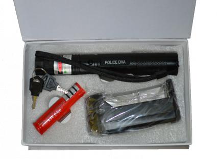 Cały zestaw wskaźnik, ładowarka sieciowa, akumulator HT 18650 3,7V 4000 mAh i głowica „DISCO” zapakowana jest w eleganckie białe pudełko, świetnie nadające się na prezent. Promień lasera - wskaźnika jest tak silny i widoczny że wiązkę lasera - wskaźnika widać w dobrym świetle dziennym. Powyższy laser - wskaźnik jest najmocniejszym z zielonych laserów - wskaźników dostępnych na rynku.